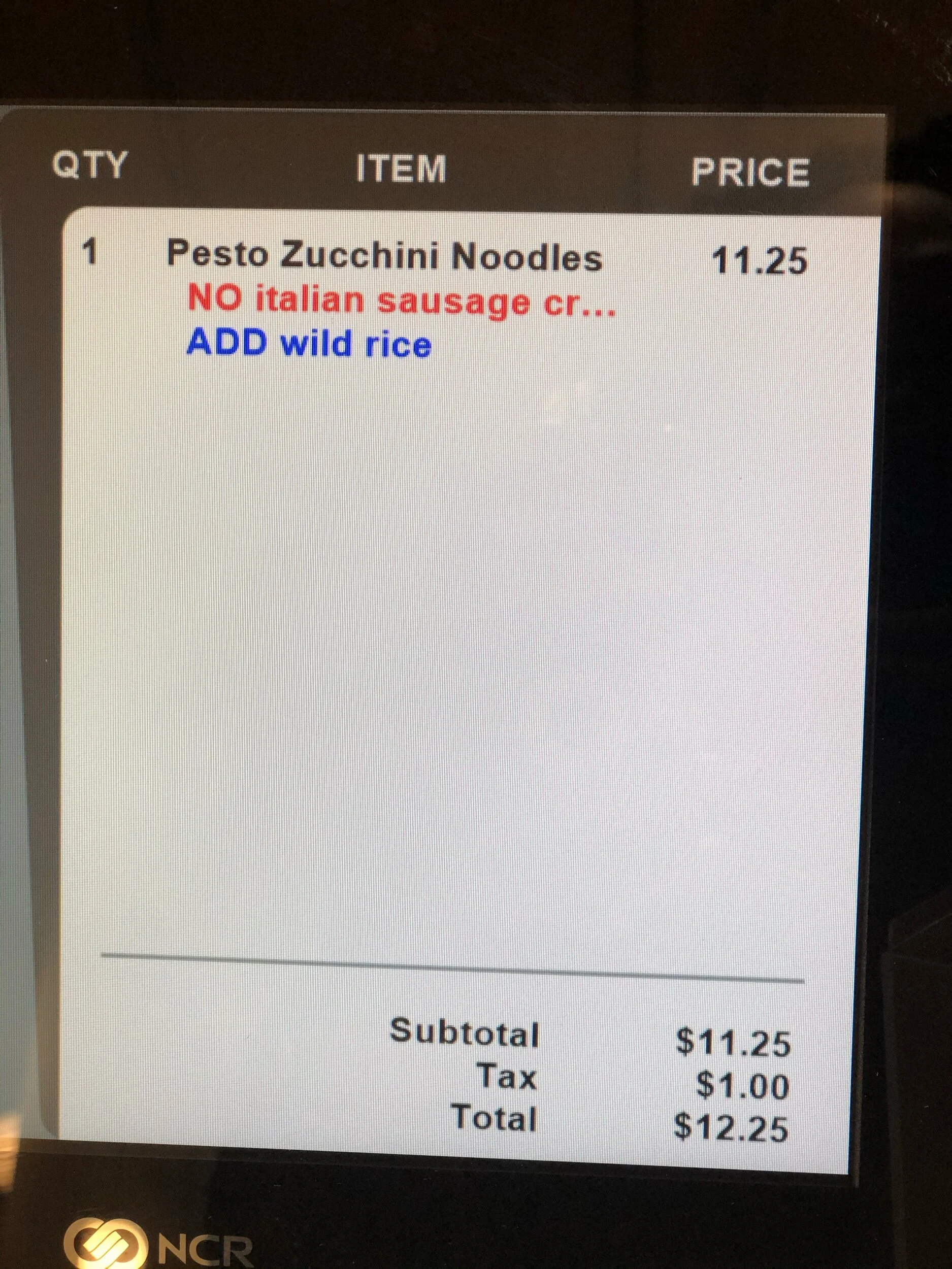 I ordered the Pesto Zucchini Noodles. It is gluten-free and I did a swap out from the Italian sausage crumbles and used wild rice instead. This dish is lightly seared zucchini noodles in basil pesto with arugula, vegan Parmesan, and roasted baby tomatoes. Now keep in mind that baby tomatoes are not recommended tomatoes from the Dr. Sebi list, now is the vegan Parmesan. However, I felt good about ordering this dish. I honestly was going to order the gluten-free burger, but I really wanted be at close to how I eat at home and to be open-minded to ordering healthier food.